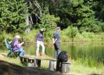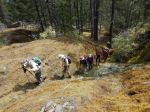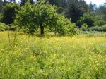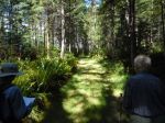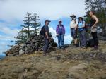We began the outing by exploring the Kellerhals’ farm from the barn down to the water, encountering gardens and farm animals on the way. Heather showed us the quickest way up to the Pond, taking old, wide logging roads and smaller paths. After admiring the Pond we began the route up Mt. Sweat. This clambers up a steep bluff and then undulates along a ridge to a wonderful lookout with views through 270°. The day was mostly sunny and very windy from the northwest. We stopped for lunch and then followed a very basic route, steeply down to Kolker Main. We soon left the logging road and re-entered the Kellerhals property, following an old, wide trail to the Coast Mountain Lookout. After descending back to the farm, we stopped to enjoy Heather’s wonderful trees and her garden. She then invited us to sit on her deck and enjoy some refreshments. It was a lovely, social day. 7.3 km; about 4 hours moving time.