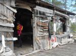 Five paddlers launched from the Discovery Lodge docks at 9:15 to catch the morning slack in Beazley Rapids, and after a short stop in Yeatman Bay, headed north to the Octopus Islands. Passing (with just enough water) between the two private islands, we found a fairly good campsite on the east side of Quadra and set up for the night. After lunch, we paddled around Waiatt Bay and stopped at a truly lovely site on the south shore (which we’re saving for a future trip). Our next stop involved a short and unsuccessful walk to find the picturesque ‘museum’ cabin on the southern private island. Backtracking a bit, we made an easy landing on the beach below the cabin, and visited the hundreds of signs and other artifacts left over the years by visiting boats.