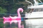 Heading back to camp, we sighted the very rare Flamingo Rosa Giganteus making its stately way around the cove (apparently propelled by two attendants…). This species is usually seen in its normal habitat of Suburbia Walmartia and is previously unknown in these waters. (First day 19.2 km or 10.4 NM; 4¾ hours)