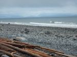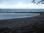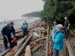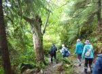 The Heriot Ridge Loop was cancelled due to rain (slippery bluffs). Instead, we opted for an enjoyable hike along the Kay Dubois Trail. The rain had stopped as six people and Kona (the dog) met at the trailhead on Wa Wa Kie Road and followed the trail south along the ocean. After the night’s rain, the forest was humid, very green, almost jungle-like. Before heading up the hill to the south end of the trail at Sutil Road, we stopped at the beach access for a break and watched the rough waves breaking at the shoreline. At the end of Sutil Road, we followed logging roads east and north. On the road north that leads to the end of Fox Road, we spotted wolf poop and a small brown garter snake trying to find a patch of sun. Before reaching Fox Road, we turned east onto a small trail that winds its way back to the Kay Dubois Trail, connecting at the big mother spruce tree. From here it was short hike back to the vehicles. Our timing was good as it began to rain again. Thank you Norris for the photo-taking. 5.3 km; 1¾ hours.