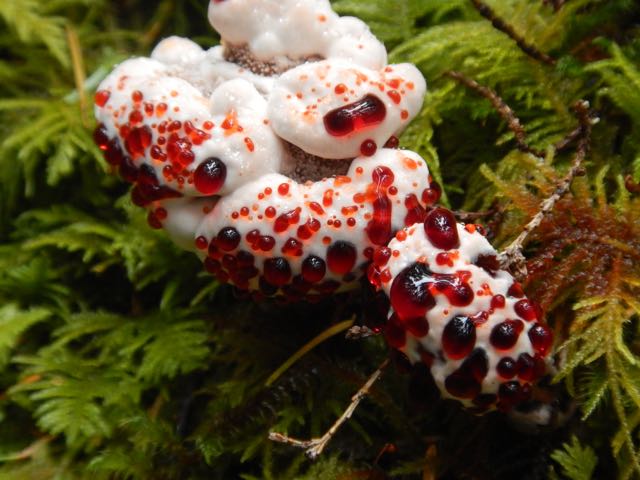 DSCN2375 Published September 12, 2019 at 640 × 480 in Trip Report – Maud Island – 11 Sept 2019 Hydnellum peckii (Bleeding Tooth Fungus)