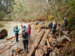 We had a big group of 14 people for this classic hike. The weather was overcast, but good for hiking. We parked on Valdez Road and walked the logging road to the shorter loop trailhead. We hiked clockwise through the new and the old forest to Village Bay where we stopped for a short break. We continued on the rocky trail with moss, lichen and water views. We stopped again for lunch on the rocky bluffs at the corner of Village Bay and Hoskyn Channel where we enjoyed the view of the calm water and migrating ducks. We continued on the trail overlooking Hoskyn Channel stopping briefly at the small cove and then hiking back along the logging road to the vehicles. 6.7 km, 3 hours.