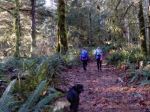 On a sunny, cold morning 13 hikers and 3 dogs set out on the very familiar (to most) Haskin’s Farm trail. After quickly arriving at the beach and enjoying the mid-fall sunshine it was decided that we would visit the big trees along the beach trail, ascend to the top of the bluff and then explore the new trails. We forest bathed under the big Douglas firs then back-tracked to the switchbacks, regrouped and headed along the new trail that skirts the bluff, checked out the man made pond that is part of the new Golf Club development, walked the new trail through the future subdivision and eventually sat down for lunch at the clubhouse picnic tables and basked in the sunshine. Several hikers headed back to their cars and several headed around the golf course, bushwacked for 10 minutes, regained the Haskin’s Farm logging road close to the Todd’s Trail sign, and finished off our 3 hour outing. The new trails are a welcome addition to this classic Quadra hike. 8.5 km, 3 hours.