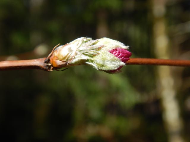 DSCN3721 Published March 14, 2020 at 640 × 480 in Trip Report – Reed Lake Loop – 11 Mar 2020 Salmonberry bud