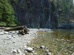 Day 3. We launched about 9:45 to be in good time for slack at Surge Narrows. Paddling up the west side of the Rendezvous Islands to the south tip of North Rendezvous, we crossed to Mayes Point at the entrance to White Rock Passage against a fairly lively adverse current. After a short stop on the south shore of the Passage (just before the campsite noted on the Marine Trails website), we paddled through the Settlers Group in good time. As the weather was very calm, we paddled a straight course up Okisollo Channel to the Octopus Islands to benefit from the favourable ebb tide. Several other parties of kayakers spotted, and the usual population of pleasure boats in the park. We camped on the shore of a very “clammy” cove on the south shore of Waiatt Bay. There is a good creek draining an unnamed lake. The grassy site is good for 2 and possibly 3 tents; others uncomfortably close to the high tide line. Another hot day. Distance covered 21 km in 5 hours 10 minutes.