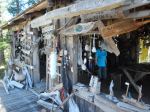 Day 4. Heading home, we made a short stop at the ‘museum cabin’ on the more southerly of the private islands adjacent to the park. Many boaters (often for successive years) have left mementoes of their visits in the cabin. We then took a short swing through the islets and headed to Yeatman Bay for lunch and to wait for slack in Surge Narrows. We slipped easily through the rocks between Quadra and Peck Island on the last of the flood, and with increasing following winds and a fair current, landed in Open Bay less than half an hour after high tide, for an easy landing and a short carry. Distance covered 23.9 km in 5 hours and 23 minutes.