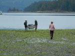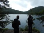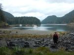While sitting on the Waiatt Bay shore enjoying lunch and the view and counting the boats, we were joined by two club members who rowed in from their sailboat. All were pleasantly surprised at this serendipitous rendezvous, and soon, we were a group of eight on the return hike to Newton Lake. We did encounter a few people returning from a swim at the lake but none of our group was tempted in on a breezy, drizzly afternoon. After a brief stop on the rocks by the lake, the sailors headed back to their boat and the hikers returned to the trailhead. 13.2 km; 5.3 hours.