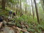 Six hikers set out on a damp, overcast day for the annual hike into northern Quadra’s provincial/marine parks. Our small group was able to set a quick pace up the rocky remains of a logging road and into the beautiful second growth forests of Small Inlet PP. A brief stop at Newton Lake made the point, as we stood in a brisk southeasterly breeze, that a swim in the lake was not likely to happen this day.