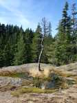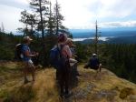 As this trail was new to one of the group, we did the “Cook’s Tour”, going southeast out to the Lilyponds and the Lookout for views to Georgia Strait and beyond, before heading to Nugedzi Lake for lunch and a refreshing and very welcome swim. After lunch, we hiked up to the next viewpoint from which we could clearly see the mountains of Vancouver Island, and, once again, wondered about the history and purpose of the “Flagpole Cairn” at this site. A pleasant walk around Little Nugedzi Lake completed the tour before we headed back down. 10.8 km; 6 hours.