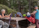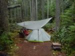 Because of the weather forecast, we set up two tarps to be prepared for the next morning. Two trail walker/runners passed by, who were doing the peninsula trail in one day, They were only carrying fanny packs and intended to continue through to Powell River with just 2 hours left. We did celebrate our last camp on this Friday evening by sharing some extra food and having a small campfire.