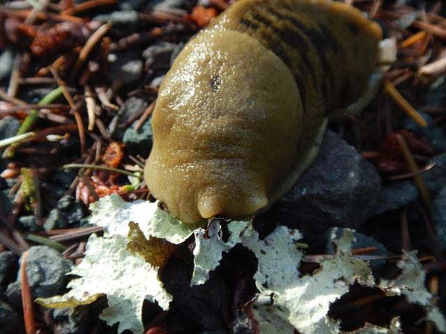 DSCN6108 Published October 18, 2020 at 640 × 480 in Trip Report – Rousseau Ridge Loop – 14 Oct 2020 Slug eating lichen