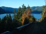 Another weekend was forecast to be fabulous, so we did another short-notice hike to check out a place we had never been to. It’s a difficult place to get to in part because the logging company keeps the access road closed most of the time. When it is open, the gate is locked promptly at 6:00 p.m. There is a long drive inside that gate, some of which has great views of Comox Lake and mountains along the way. Then there is a 2 km section which has water bars (cross ditches) making it accessible for 4×4 only and then there is the hike itself. The trail is well worn, but hardly improved, so it is slow. And this makes it harder to do as a day-hike. We parked before the water bars and hiked up the logging road to the trailhead.