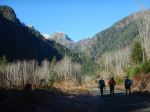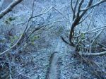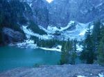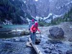 The trail isn’t special. It’s often muddy, rooty and slippery, there is a lot of deadfall, there is a headwall below the Lake with a few places which require a bit of scrambling (and could use a rope). Also, for us the trail was frequently icy, and occasionally the rock had a thick coating of ice.