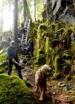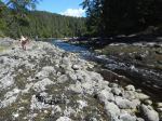 Day 3 – Rain was forecast overnight and into Wednesday, but we really only had drizzle overnight and it was dry by morning. Still, for breakfast we took advantage of the beautiful picnic shelter at the Smelt Bay campsite, with its timber-framed structure, wood stove and picnic tables. We then set out for the long loops at Kw’as Regional Park. Starting near the Cortes Motel, we hiked the eastern side Millennium Trail out to the Swim Rock for lunch. We followed along the Rock Face trail on the Hague Lake shore and visited the amazing Survivor Fir before crossing the narrows and hiking the loop out to the bench on the Pierre de Trail. Returning by the Cedar Ridge, we re-crossed the narrows and followed the Gunflint Lake shoreline stopping at the old steam donkey and then back to the cars. (12.4 km; 5.75 hours)