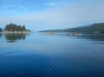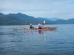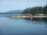 On Wednesday morning we kayaked south from Shingle Beach in steadily increasing southeast wind. We had no fixed destination and returned to the beach as the white caps pushed us home. (5.7 km; 1½ hours) In the afternoon, we drove to Shelter Point and walked the gentle Kay Garner nature walk. This trail loops first along a shore bluff on Mouat Bay and then through the forest. The ocean views and old growth were excellent. (3.8 km; 1 hour) After dinner we again enjoyed the sunset from bluffs at the campground.