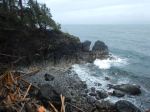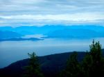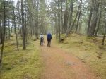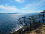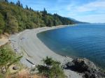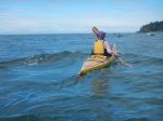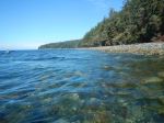 On Wednesday morning we kayaked south from Shingle Beach in steadily increasing southeast wind. We had no fixed destination and returned to the beach as the white caps pushed us home. (5.7 km; 1½ hours) In the afternoon, we drove to Shelter Point and walked the gentle Kay Garner nature walk. This trail loops first along a shore bluff on Mouat Bay and then through the forest. The ocean views and old growth were excellent. (3.8 km; 1 hour) After dinner we again enjoyed the sunset from bluffs at the campground.