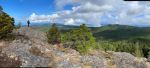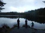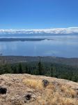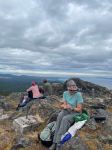 On Friday, we drove uphill on good-condition logging roads to Bob’s Lake, another Forestry Recreation site with camping. The lake was beautiful, quiet and very inviting as a camping destination. Nearby, we hiked up to Mt. Davies with the summit at 609m. This hike was even shorter than the Mt. Pocahontas hike and mostly through a beautiful, mossy forest with completely open understory. After enjoying the 360° views during lunch, we hiked on looking for the viewpoint from Mt. Blood. We underestimated the number of routes flagged with identical flagging tape in the area and some ended up elsewhere, but all had great views. Some of us swam in Bob’s Lake before returning to the campground for dinner. (5.5km; 3¼ hours)
