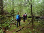 Thirteen of us hiked this trail even though the forecast was for rain and wind. As it turned out, the weather wasn’t too bad, just some drizzle for a while. It’s a forest trail anyway, so no views were missed, and the trees drip even when the rain stops. The trail is very muddy in sections, so good boots are recommended.