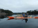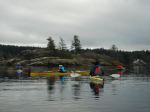 A very nice winter day provided an opportunity for seven club members to get together for a 2 hour paddle to celebrate the Solstice. With an icy boat launch at April Point and a skim of ice in the harbour it was a wintry day. We paddled out of the marina on calm seas, overcast skies and temperatures around freezing. The three paddlers that put in further east in Gowlland, paddled against the current in the channel and met up with us for the trip out and along Gowlland Island. We rounded the top of Gowlland with Steep Island on our port side and then altered course towards the smaller island group and away from a cold northerly breeze.