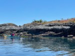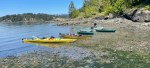 This trip was rescheduled from May 11 and this time the weather was perfect. The first paddle of the summer in bright sunshine with a light breeze. Three kayaks met the other two kayaks at April Point Marina. From there we went up the west side of Gowlland Island to Steep Island.