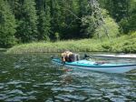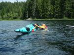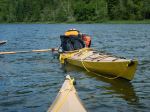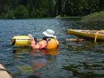 Participants got in their boats or entered the water to practice solo rescues, including paddle float rescues with and without a sling assist. One couple also practised an assisted rescue involving two boats. Everyone seemed to be happy that they tried at least one rescue, and all came to the conclusion that rescue skills greatly diminish over a year’s period, and that at least two practices a year would definitely be beneficial and make paddlers more confident.