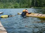 Five club members met at Mine Lake to practice kayak rescues. As it was sunny, but cool and windy, blowing onshore, the decision was made not to paddle to another location and practice was held close to the boat launch. Participants discussed deck layout, paddle floats, and a dry running of a paddle float rescue and a group rescue.