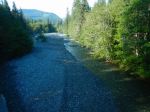 After lunch and a bit of exploring on the ridge, we headed back down, going quite slowly in the heat. ( 8.6 km; 658 m elevation gain) Once back on the logging road toward Sayward, we stopped at the White River Provincial Park to walk through the old growth grove to the White River.
