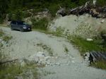 We did this hike on impulse after the destination we had wanted was unavailable due to a locked gate on a logging road. From Quadra it’s quite long as a day trip. The drive from Campbell River was nearly 6 hours round trip. And it was a very hot day. Normally this is a route for climbers on their way to Victoria Peak, but we were after a hike to the sub-alpine with good views. Forty-eight kilometres out from Sayward, we turned onto W79, which is signed as the road to Victoria Peak. This road is in decent condition and winds its way up fairly steeply. There were 16 cross ditches, none of which were impossible, but it was very slow going. After a while we decided to walk, but we could have driven another 2½ kilometres. From the trailhead to the ridge it’s short, but quite steep. A typical climbing access route, the path to the ridge rises 213 m over 713 m, for about a 30% incline.