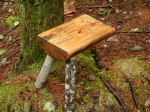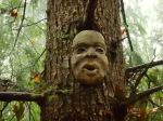 After meeting for a leisurely coffee and treat at the Aroma Café, five hikers, clad in full raingear, made our way into the Q-Cove labyrinth of trails via Plaza Road and “the stairs”. Seventy or so stairs lead the way to Nole Road and the Nole Road right-of-way, a well-established trail, hopefully to never be a road, through to Noble Road. The group quickly became involved in hunting for the faces in the forest (many carved and placed by Johann Weighardt) and found several of the well camouflaged masks.