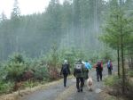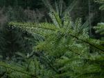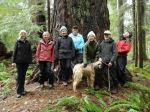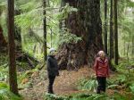 Nine of us set out in rain gear for this rainy-day walk. As it turned out, it didn’t rain. And it wasn’t even windy. It was just a simple, pleasant walk in the woods on a quiet logging road: Village Bay Main. There were a few alders fallen across the road, but no problems. We took the short trail that connects to the logging road which accesses the Shellaligan trail system and then returned to the vehicles. After that, we made a quick visit to the big Douglas fir trees near pole 37 on Valdez Road. (7.4 km; 2 hours, plus 200 m and 10 minutes for the tree)