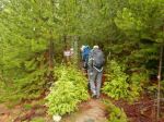The old road had quite a bit of water, running down it to the beaver pond. The water level was quite high in the pond and it was starting to rain now so we pushed on to Eagle Ridge. We stopped at the top to have a quick lunch. The rain started coming heavy so we headed back to the vehicles. We were all soaked by the time we got back to the vehicles but we’re quite happy that the first two hours were dry. 7 km, 3 1/2 hours.