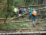 It was a cloudy cool day as 10 of us set out for a hike. We parked on the Copperhead logging road near the repaired culvert as there is more parking there. We first went up the Blindman’s Bluff trail. There were a few trees down and wet salal on the trail. All in all though it is in good condition and a fine hike. The many open bluffs give excellent views to the east and south. Visibility was good, but you could see the rain coming from the southeast. We paused for a brief snack, and to enjoy the views at the largest open area. We then circled back to the main trail.