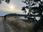 Eight club members welcomed the New Year with a (very) brisk walk around Rebecca Spit on Monday January 2, making the full loop from the Sasquatch parking lot north to the point, then heading back down via the campground to Heriot Bay road, and back to our cars. We moved to the west side of the Spit to have our Hot Chocolate social out of the light north-east wind.