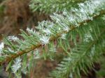 Note: Hair ice forms on moist, rotting wood from broadleaf trees when temperatures are slightly under 0 °C (32 °F) and the air is humid. In the year 2015, German and Swiss scientists identified the fungus Exidiopsis effusa as key to the formation of hair ice. [Wikipedia]