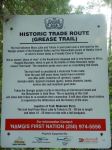 The campsite was not where we expected because the trail location on Backroads map is incorrect. The campsite is in much better condition than we expected since the BC parks says there are no facilities, and other sites simply repeat that there are a “few tent pads.” The campsite was built and the trail re-established as an initiative by the Namgis between 2001 and 2005. Lindsay Elms’ information in Beyond Nootka is the most complete. While some of the tent platforms have rotten wood, the general facilities and location are excellent for rustic camping.