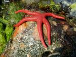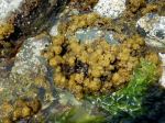 We had a small but enthusiastic group on the low tide walk at Francisco Point with Deb Cowper’s amazing observations and information. The low tide in the middle of the day was a bit more than half a metre. We walked over the cobbled shore to the tidal lagoon. Deb talked about the seaweeds we were seeing (lettuce, cauliflower, Sargasso, and bladderwrack), the trajectory of the sea star wasting disease and the creatures affected by it, the life cycle of barnacles, the way that marine organisms can draw calcification from seawater to build their shells and outer structures. Deb talked about the moulting process for red rock crabs and what often appears to be a dead crab Is just the outer shell, left behind after moulting. Five is the magic number for the radial symmetry of echinoderms: sea stars, sea cucumbers, sea urchins, sand dollars.