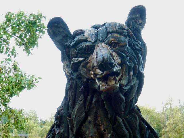 DSCN9149 Published October 17, 2023 at 640 × 480 in Trip Report – Haig-Brown House and Baikie Estuary – 16 Oct 2023 Driftwood sculpture bear