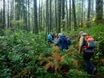 We then continued and stopped at the Aisle of 19 and the Three Sisters along the trail, which are among the most magnificent old growth trees on Quadra. One of the wooden bridges was damaged from a fallen tree but with care, all five made it safely across.
