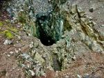 Eight of us combined two hikes from Deepwater Main on an overcast day which threatened rain. We headed up an old logging road which is eroded and climbs a bit, to the old Benn mine. The overturned Oldsmobile, the core samples and other mining artifacts are historically interesting, as are the pits with their collapsed roofs. The rocks with quartz and copper are showy and the tunnel with water and light at the end is atmospheric. (2,8 km; 150m elevation; 1¼ hours)