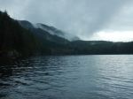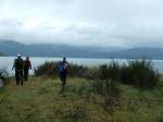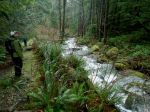 We headed back down and then hiked down along the beautiful creek to Deepwater Bay. This is a steep valley which has always been prone to tree fall and landslides. When the Outdoor Club last hiked this in March 2020, every downed tree had been chainsawed for easy passage, but this time the deadfall was unprecedented. We climbed over, under or through 56 trees and the resulting thicket obscured much of the creek. The rain held off and we had lunch on the shore where the old salmon hatchery has been torn down and the owner is improving the property. We are very grateful that “leave no trace” access is permitted here. We then climbed back up the hill and through the deadfall to the vehicles. Thankfully the wind and rain mostly held off until later in the day. (4.5 km, 235 m elevation; 2 hours with lunch)