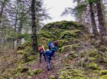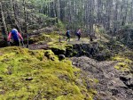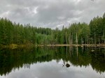 Five of us hiked the loop Little Black Dress, Back Door, Silk Stockings (counter-clockwise). The weather was good and getting better. The moss was bright green from all the recent rain, but the trail was surprisingly dry (though still slippery) and in mostly good condition. We observed again the old copper mining sites and artifacts and we stopped for lunch on one of many open mossy bluffs. The loop took us twice by the lake with high water, water birds, and the impressive beaver dam, which we visited. (6.3 km; 3 hours)