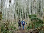 On a windy, overcast day seven hikers met at the back parking lot of Rebecca Spit. It was +5° outside, but felt like -5° in the heavy wind. It was blowing 25 knots and gusting to 40 so the ocean was very rough toward Cortes Island. This made for some very interesting viewing as we made our way down to the Sasquatch and Paddy’s Lagoon. The trail was surprisingly dry considering all the snow that we had the week before. We retraced our steps back up the beach and then went through the campground to Drew Creek Trail.