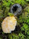 The weather was as unsettled as promised, a short, violent hailstorm as I left home almost convinced me to change our destination. However, the weather seemed to improve as the morning wore on so we opted to chance it, with the caveat that, if the predicted thunderstorms did materialize while on the trail, we would immediately abort the hike. Indeed, after a few unexpected delays, as eight hikers finally began our excursion at 12:20, the sun began to burst through, highlighting the luxuriant spring green moss and groundcover. This is a pretty trail, most of it on gently sloping old logging roads leading to the border with the Conservation area. At the junction of the old road with the trail proper we came across a quartet of abandoned bikes. We met their owners a few minutes later, a young Island family, returning from their trek out to Maud. We lost our weather gamble just as we hiked the final slope to the viewpoint, fortunately just heavy rain, no thunderstorms! With our planned later start time (thanks Les!) we arrived at the viewpoint at 2:20, just 30 minutes after the predicted 14 knot full flood. A zodiac gave its boatload of tourists a thrill as it rode the currents and rip tides at the south end of Seymour Narrows. A small cruiser was getting a free ride downstream, backwards! Not sure if that was the planned route. As the rain settled in with a vengeance, we had a hasty lunch under the trees, not like our usual summer sojourns in this very scenic spot. We were back at our cars just before 4 pm.