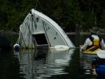 A few minutes later we crossed the mudflat to the Waiatt Bay trail head, stopped to marvel at the freshwater spring a few strides later and then made the short hop to Waiatt Bay. By this point we had only met up with a few pairs of hikers coming from the anchorage. At the bay on Quadra’s east coast, dozens of “yachts” were visible. Perhaps the very big tide flat was discouraging them from coming ashore?