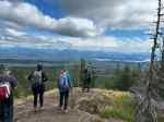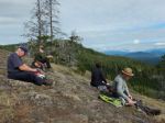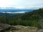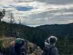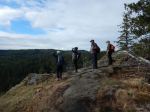 Six hikers started out from the parking area at Chinese Mountain trailhead at approximately 10 am. Morning showers had been forecast the night before, but the trail was dry with no rain. There are some areas of trail which could be awkward if there has been any amount of rain as the trail follows a dry creek bed for a short distance and would require a bit of bushwhacking to get around. Also most of the trail is on bare rock so in damp conditions it could be slippery in sections. The weather was overcast in the morning with more blue sky peeking through as day went on. There are several viewpoints on the way up with good views of Drew Harbour, East and West Quadra Island and views beyond. One viewpoint just before the top of the mountain gives an amazing 180 degree view of the East side of Quadra Island and if we had less cloud cover the peaks of the Coast Mountains. It was close to 12 noon when we reached the peak so we stopped for a lunch break and a rest after the steep ascent. We retraced our trail and had an easy downhill trek back to the parking area. (6.9 kilometers up and down, 4 hours, 350 meters elevation gain)