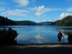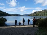After rescheduling the hike and surviving a major storm on Thursday, Friday dawned a beautiful day. A dozen of us hiked from the Surge Narrows Road down the trail into Main Lake Provincial Park. The trail was in excellent condition and we enjoyed the fine mature forest, lots of mushrooms, a quick stop at Roscoe Lake with very high water levels, two waterfalls and a few big old growth Douglas firs along the way. After admiring the new outhouse at the East Beach campsite and the under-construction bridge, we enjoyed the view of the calm lake before walking a bit further to the big sunny rock where we had lunch. Most of the group continued on the Yeatman Bay to complete our journey from forest to lake to the ocean. The trip was very social, but we encountered no one on the trail nor at the campsite. It was a beautiful, autumn day. (9.9 km; 4 hours)