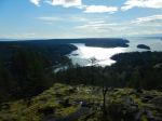 We followed the loop around clockwise, quickly arriving at the high, open bluffs with 180° views to the east. It was a perfect autumn day, with great views at the right temperature. We stopped for a snack/lunch at the southeast viewpoint with great views over Gowlland Harbour and Vancouver Island. We stopped again at the southwest viewpoint before continuing back on the trail and the logging road to the vehicles. (3.7 km; 2 hours; 170 m ascent)