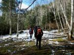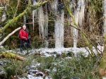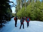On a partially sunny day four hikers and two dogs set out to do the shorter loop counter clockwise. The rocks were wet, but trail was in good shape. The ocean views with the snowy mountain peaks in the distance are very picturesque on this shoreline walk. We paused on the Village Bay rocky point for the views up Hoskyn channel. We did not stay long as there was a cool breeze coming off the water. The group then continued down the shoreline and up the hill to the fork in the trail. From here we traveled down the gully and over the bridge. The creek was running fast and high. We continued on to the oyster farm where we enjoyed a lunch while watching the birds. After we returned back up the hill and to our vehicles. (4.5 km and 2½ hours)