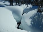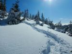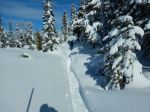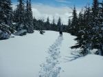 Since the planned paddle was cancelled due to a wind forecast, we switched to a snowshoe trip. And the weather at Mt. Washington was a surprise – sunshine and 18 cm fresh snow. Three of us went up Great Big View following a broken track, then we went on Finger Glades. The snow and the views were great. We stopped for lunch and shortly after the broken track ended. We decided to continue anyway and the route carried on and up. Eventually we joined a track left by skiers for a while. Then we were breaking trail again. We followed the wands for Marmot’s Mess in the wrong direction until we cut cross-county back to the Great Big View trail. Jim was the champion trail breaker and super fixer of a broken crampon.