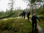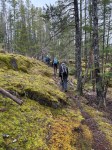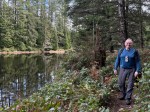 Seven hikers enjoyed an 8 km, 3 hour hike in the area south of Walcan Road, starting at the pullout at Reed Lake. The weather was great for March – cloudy but with no rain, no wind and a pleasant 8° C. We headed south on Straight-as-a-Dime Trail, following a combination of newer bike trail sections and old logging roads. Turning east onto Backdoor Trail, we hiked over vibrant green moss-covered rock bluffs and through a pine forest. We continued on to Dick’s Ride and eventually ended back on Yellow Mud where we had lunch at the beaver dam before continuing on the last stretch of the trail. We heard many birds and were happy to listen to the croaking of the frogs. We continued northwest down Yellow Mud Trail through lush sword fern, hemlock and a Douglas fir forest. Much work has been done on this part of the trail and the trail has been renamed Rob’s Ride in memory of Rob McKerracher. (8.2 km and 3 hours)